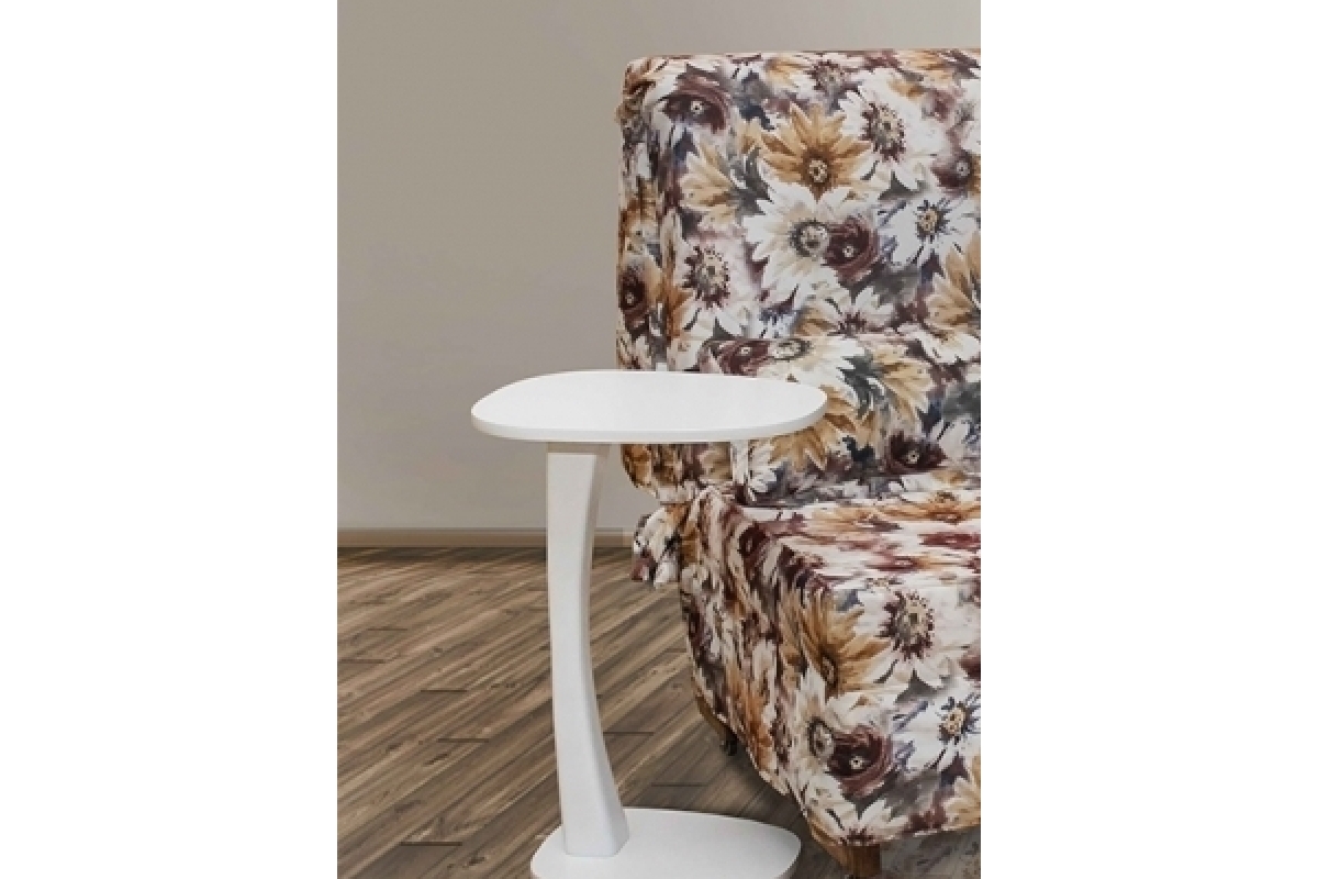 • Ніжка виготовлена з масиву натурального клена Стільниця та підніжка виконані з МДФ, покритої штучним шпоном Покритий італійським поліуретановим лаком Може використовуватися як підставка, кавовий столик або столик для ноутбука Стільниця із закругленими кутами Ш: 460 мм Г: 350 мм В: 640 мм Кольори: білий, темний горіх