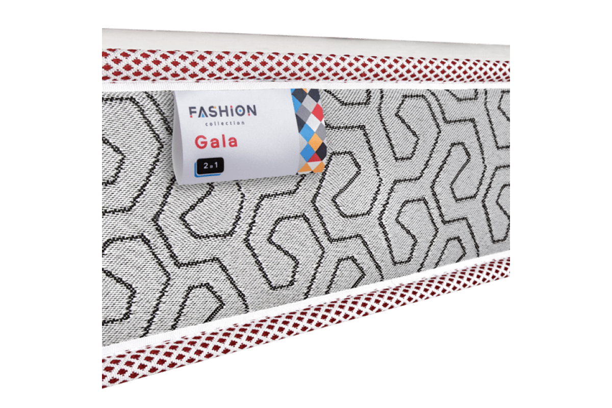 Матрац Fashion Gala - двосторонній безпружинний матрац з різною жорсткістю сторін. Одна сторона має середню жорсткість (3), інша сторона має помірну жорсткість (4). Висота матраца - 12 см, максимальне навантаження - 100 кг на місце.