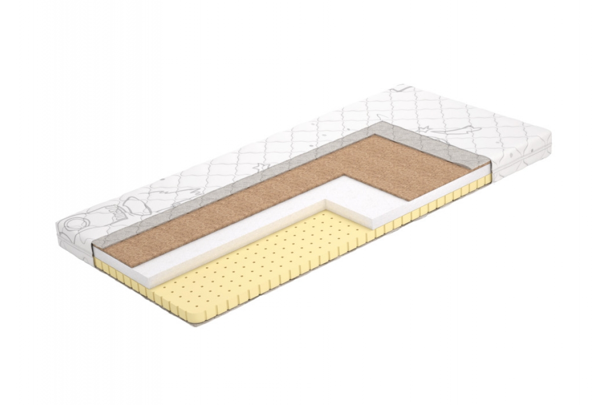 - Кокосовая койра. Материал производится из кокосового волоса. Обладает жесткостью, за счет чего усиливает ортопедический эффект матраса.