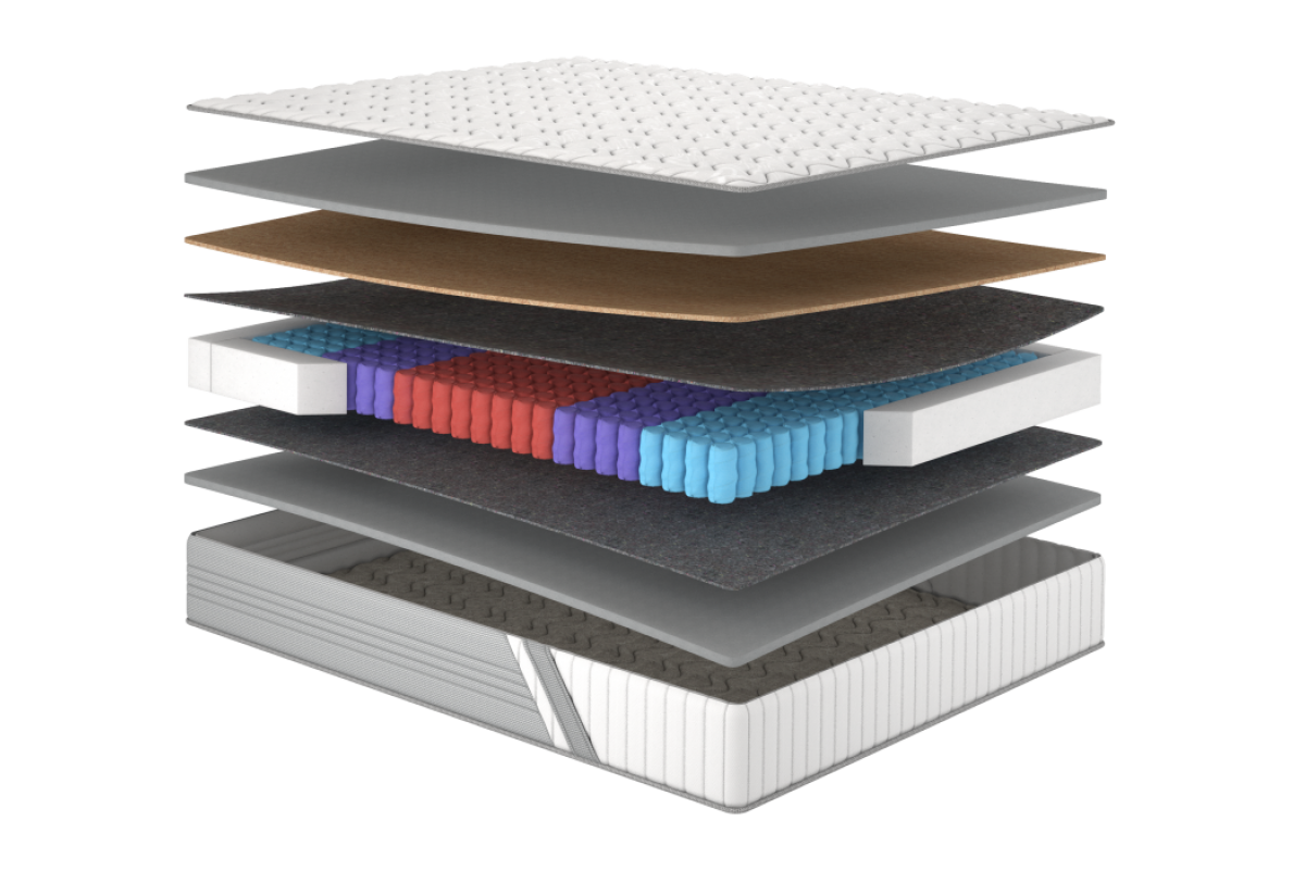 - Mix Felt. Нетканое полотно из смеси натуральных и синтетических волокон. Защищает мягкие слои матраса от воздействия пружинного блока и обеспечивает правильное распределение нагрузки по его поверхности.