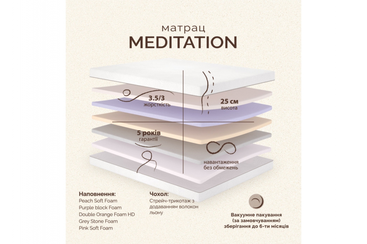 Основные характеристики Медитация матрас ортопедический - Meditation Matroluxe матрац на кровать