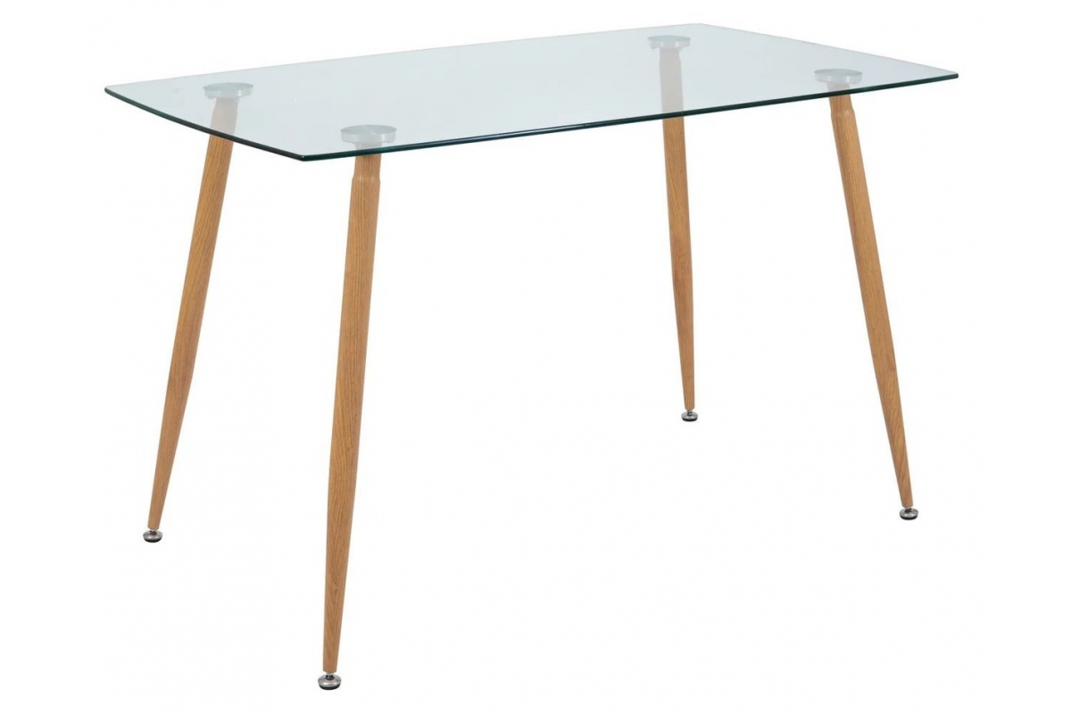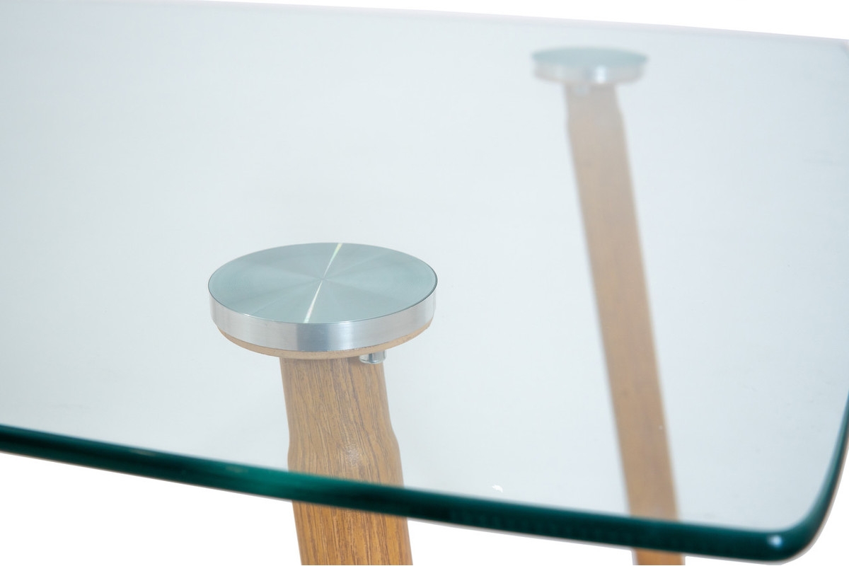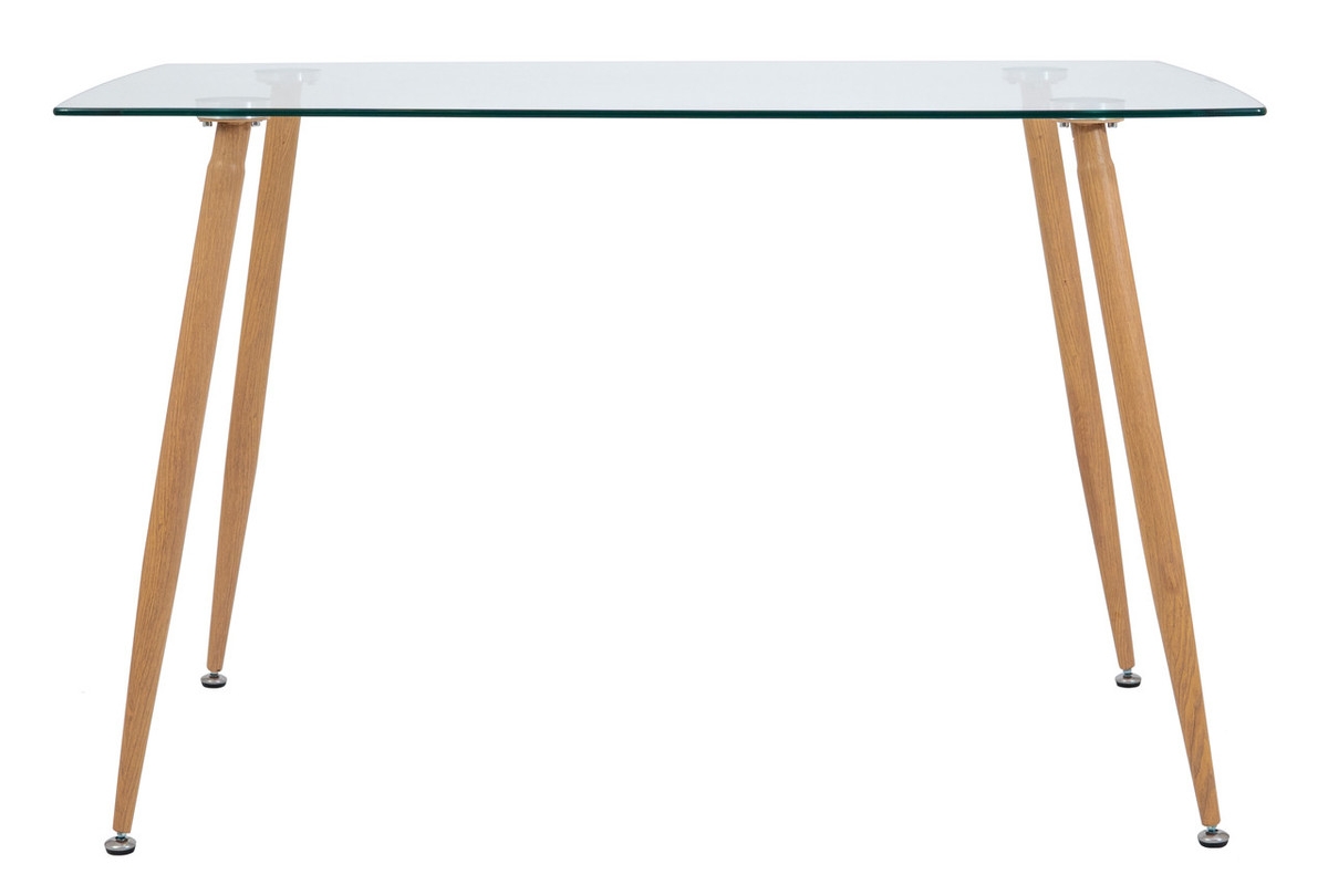 Основание столешни: Стекло прозрачное, термозакаленное (триплекс). Толщина стекла = 10 мм. Ножки – металл, термопечать стуктуры древесины. Размер столешницы 120*70 см. Высота: 75 см