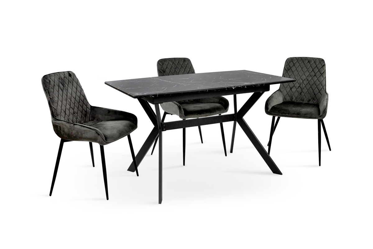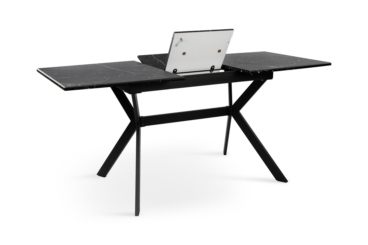 Стол Хьюстон 130(+40)*77 черный металл/мрамор черный
