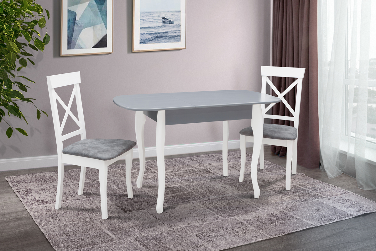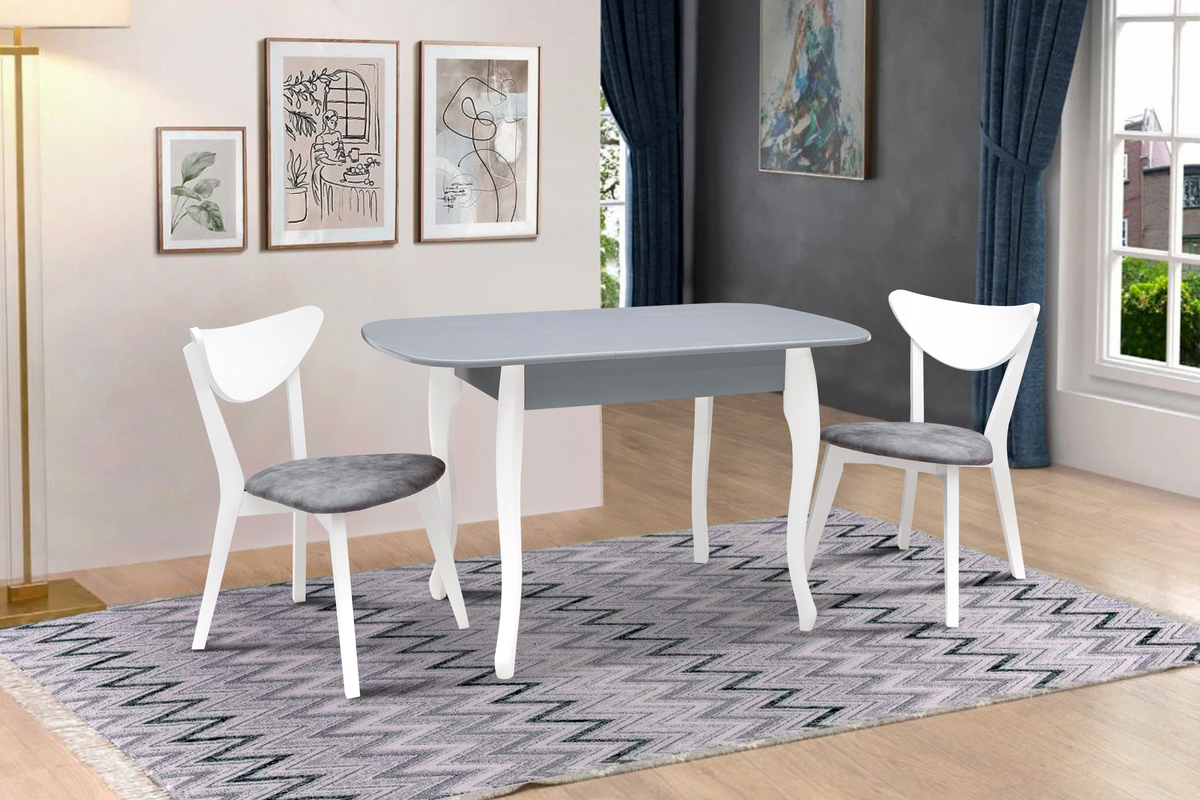 Размер: 930(+300)*670. Цвет: серая столешница, белые ноги и каркас. Материал: Каркас: массив клена; МДФ с искусственным шпоном.