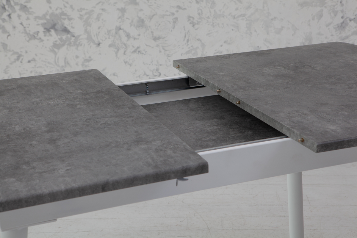 Размер: 1100(+350)*700. Цвет: Каркас и ножки: Белый; Столешня: мрпмор светл. Материал: Каркас и ножки: Металл; МДФ в ПВХ пленке. Вкладка в стол сплошная, сохраняется на столе. Толщина столешняя: 20 мм. Каркас и ножки: порошковое украшение.