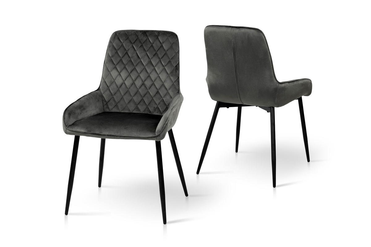 Розмір: В: 87 см; Г: 55 см; Ш: 59 см; Колір: Каркас: чорний; Сидіння: велюр графіт; Матеріал: Каркас: ніжки - метал; Сидіння: поролон у велюрі.
