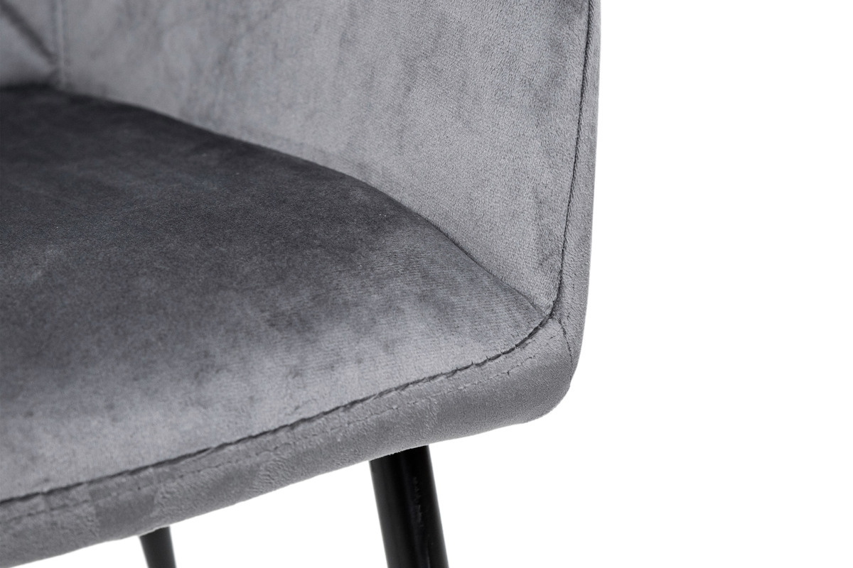 Розмір: В: 89 см; Г: 57 см; Ш: 58 см; Колір: Каркас: чорний; Сидіння: велюр сірий; Матеріал: Каркас: ніжки - метал; Сидіння: фанера гнутоклеєна + поролон у велюрі.