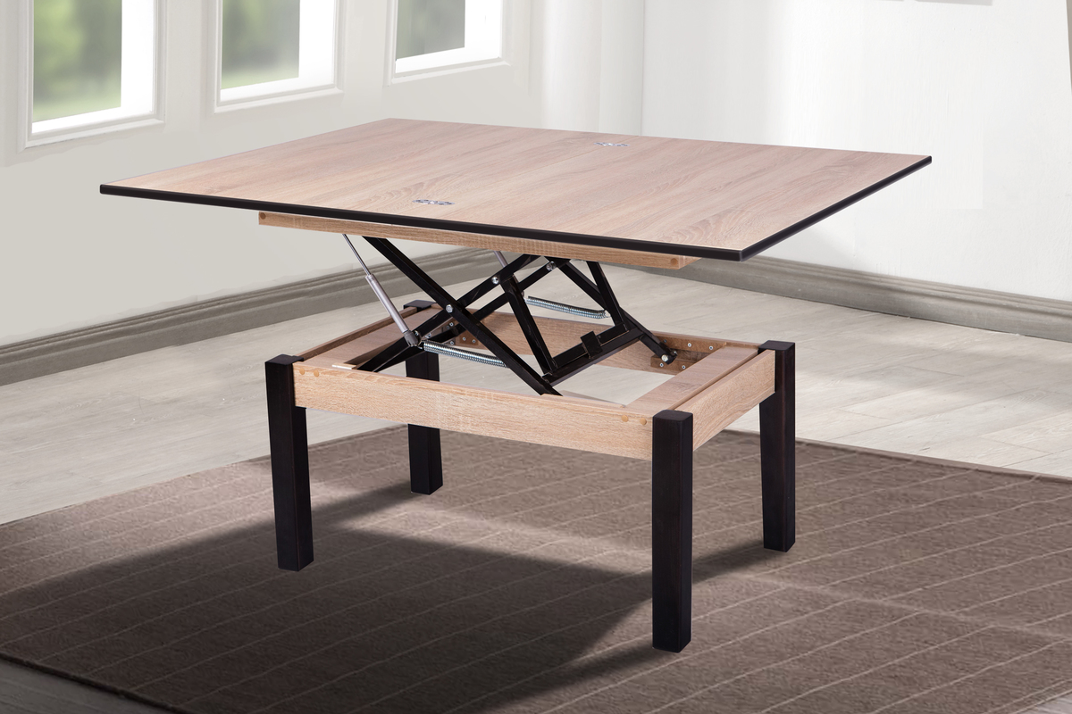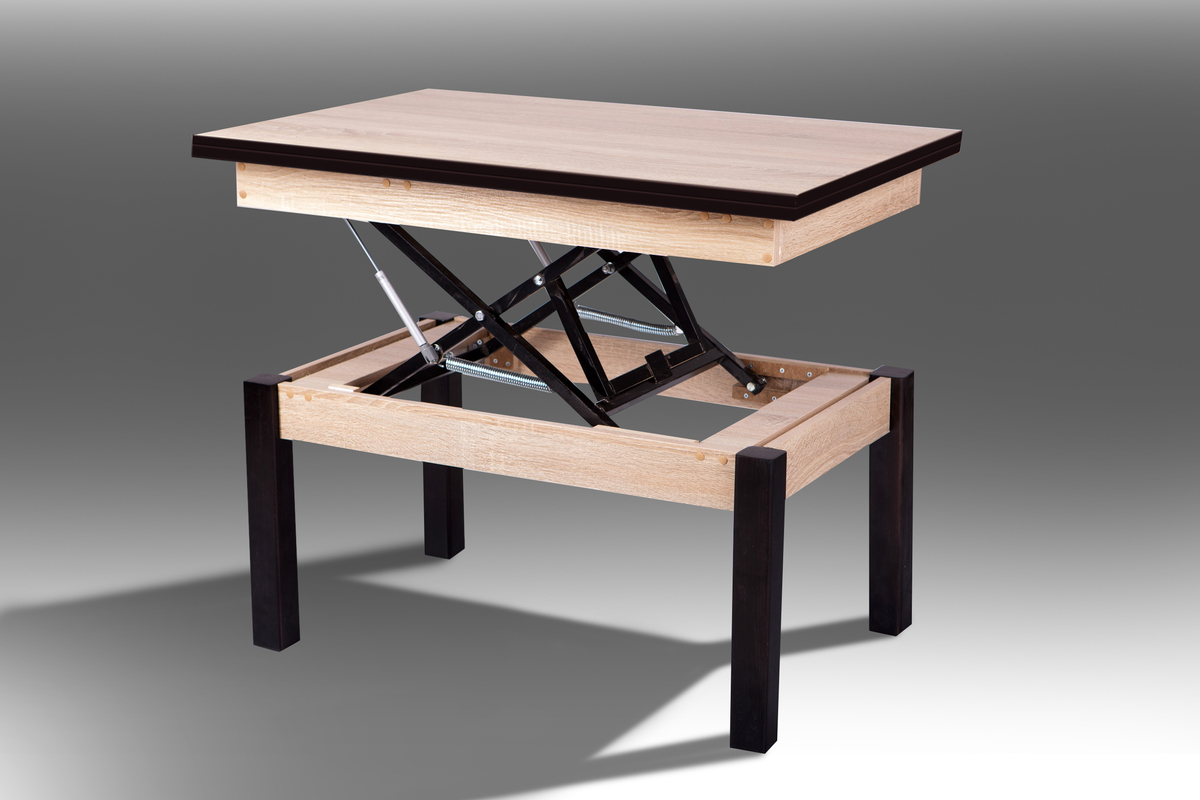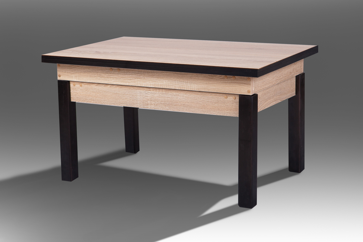 Розмір: Довжина 902 (1204), Ширина 602 (902), Висота 520 (750) Колір: Ніжки: чорний; Столешня: ДСП - SWISSPAN І Дуб сонома Матеріал: Ніжки: масив дерева; Столешня: ДСП Стіл-трансформер Флай від компанії МІКС Меблі - це чудове рішення як для невеликих приміщень так і для вітальних кімнат та дач. Займає в складеному виді дуже мало місця, але коли його розкласти, то він стає повноцінним обіднім столом. Його габарити: у складеному виді (ДШВ), мм 902 * 602 * 520, в розкладеному - 1204 * 902 * 750. Стільниця столу виготовлена з сучасного високоякісного ДСП, яке відповідає всім існуючим стандартам в Україні.Механізм трансформації виготовлений із квадрат-труби товщиною 16*16мм., пофарбованої порошковою фарбою, що дозволяє витримувати будь-які навантаження (в розумних межах). Механізм оснащений газовими амортизаторами та пружинами. Це сприяє м'якому підйому стільниці перед розкладкою. Опори столу виготовлені з екологічно чистих порід деревини.