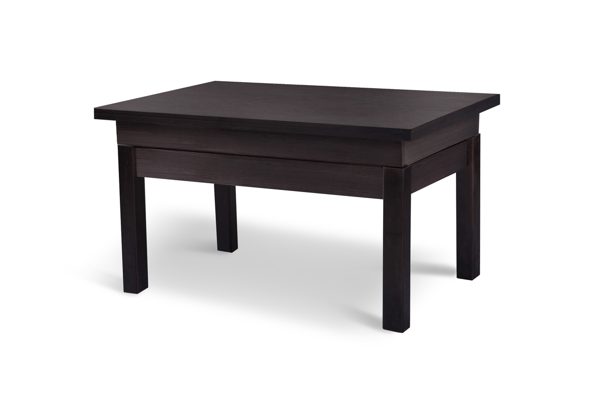 Розмір: Довжина 902 (1204), Ширина 602 (902), Висота 520 (750) Колір: Ніжки:чорний; Столешня: ДСП - SWISSPAN Венге Матеріал: Ніжки: масив дерева; Столешня: ДСП Стіл-трансформер Флай від компанії МІКС Меблі - це чудове рішення як для невеликих приміщень так і для вітальних кімнат та дач. Займає в складеному виді дуже мало місця, але коли його розкласти, то він стає повноцінним обіднім столом. Його габарити: у складеному виді (ДШВ), мм 902 * 602 * 520, в розкладеному - 1204 * 902 * 750. Стільниця столу виготовлена з сучасного високоякісного ДСП, яке відповідає всім існуючим стандартам в Україні.Механізм трансформації виготовлений із кв