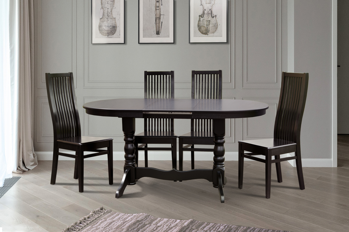 Розмір: 1600(+400)*900 Колір: Венге Матеріал: Каркас - масив бука; столешня - МДФ Дерев'яний стіл Говерла створить у вашому будинку неперевершену атмосферу комфорту та тепла. Це саме та модель, яка допоможе вам відпочити від холодних вечорів у родинному колі або колі друзів за таким великим столом. Матеріал, з якого зроблений стіл, створює гармонію, а в повітрі витає почуття спокою. Якщо ви віддаєте перевагу натуральним матеріалам, якщо ви хочете створити куточок де ви зможете залишити всі турботи і проблеми, то стіл Говерла - це ідеальний варіант для того, щоб здійснити бажане.