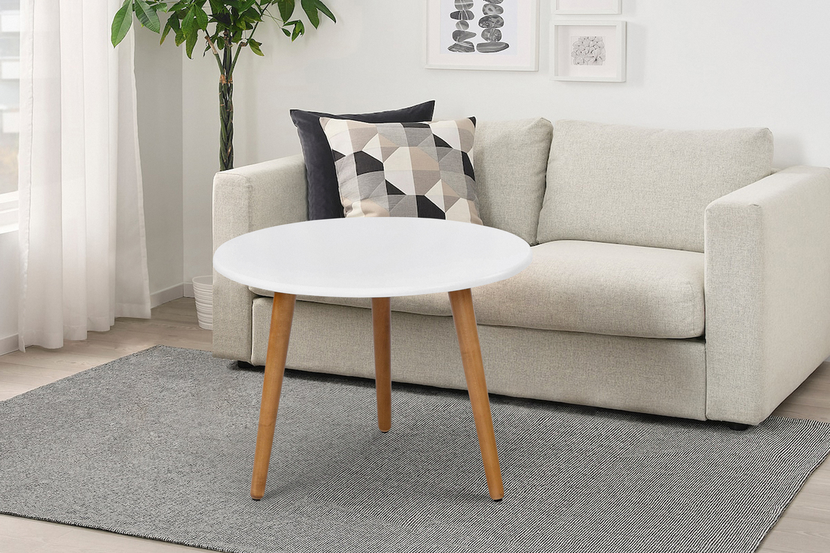 Розмір: D = 610 мм; H = 450 мм. Колір: ясен/білий. Матеріал: Каркас: масив клена; столешня: МДФ фарбований;