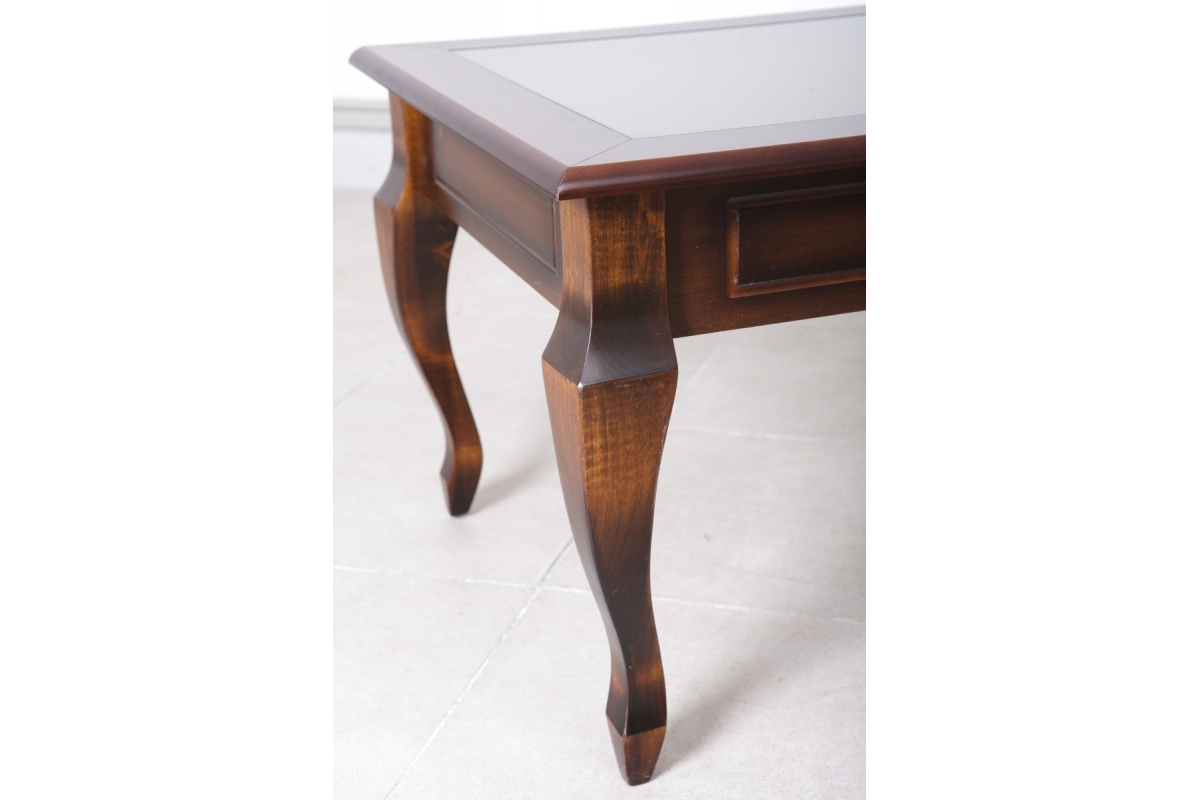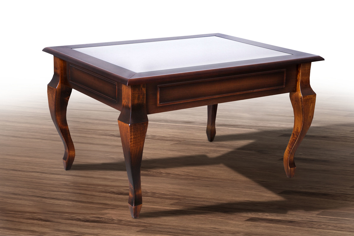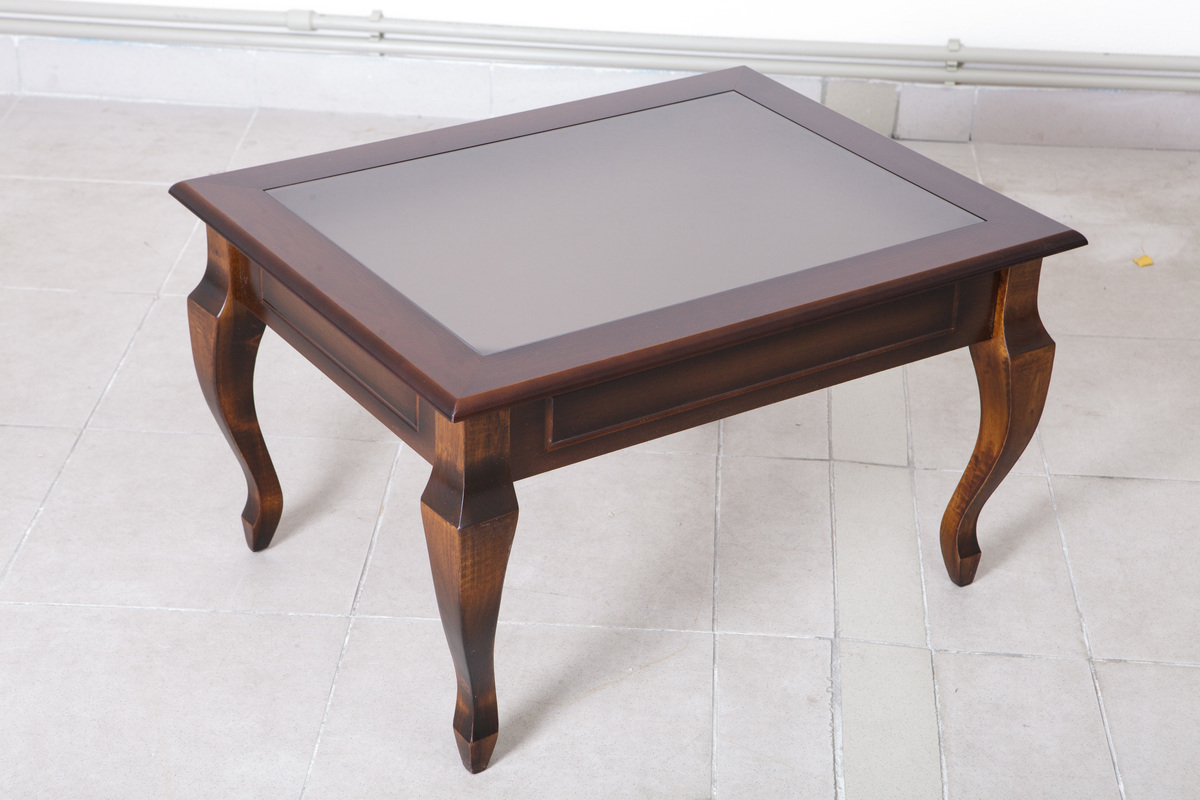 Розмір: 760*600*470 Колір: Темний горіх Матеріал: Каркас: масив клена; столешня: МДФ зі штучним шпоном+скло