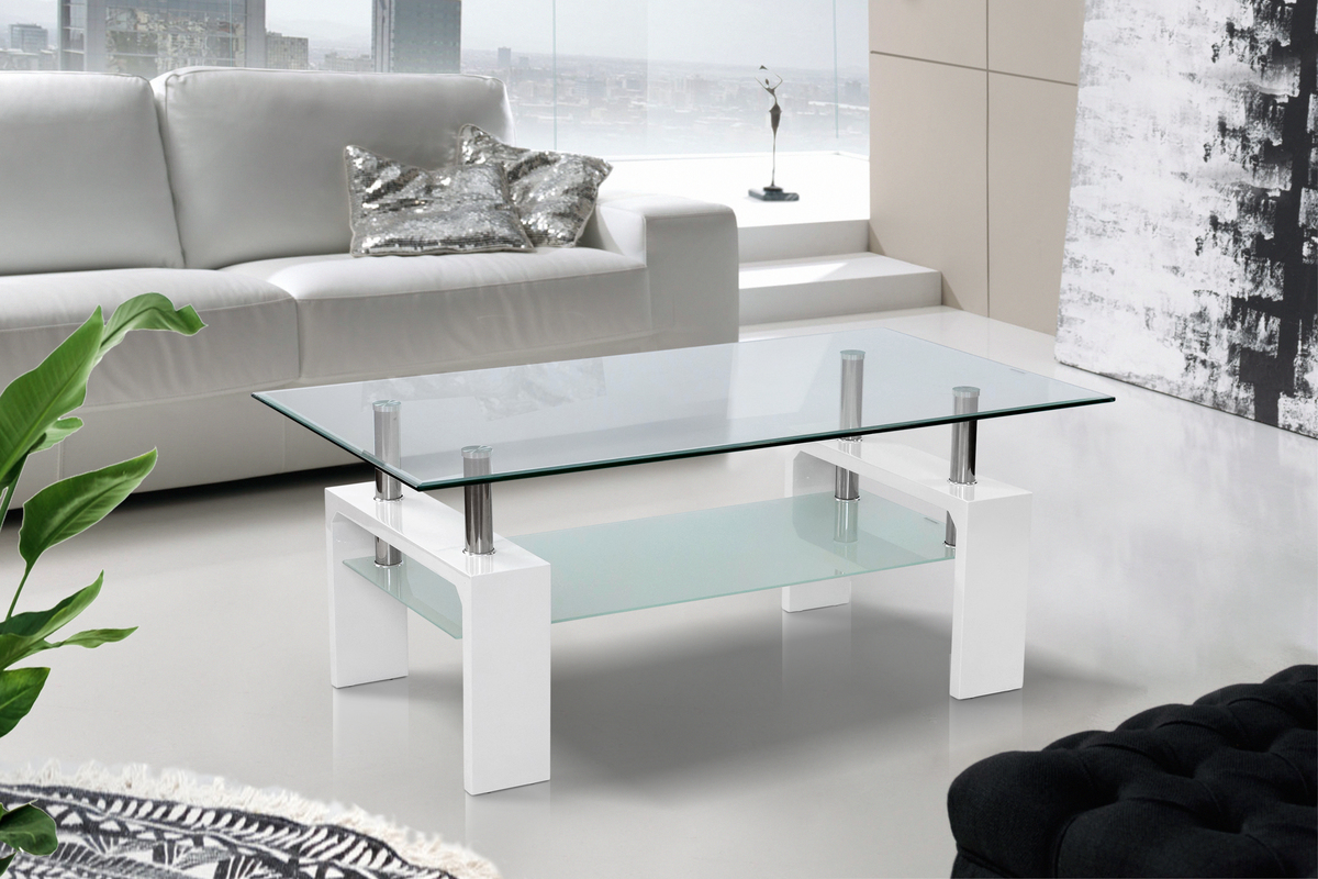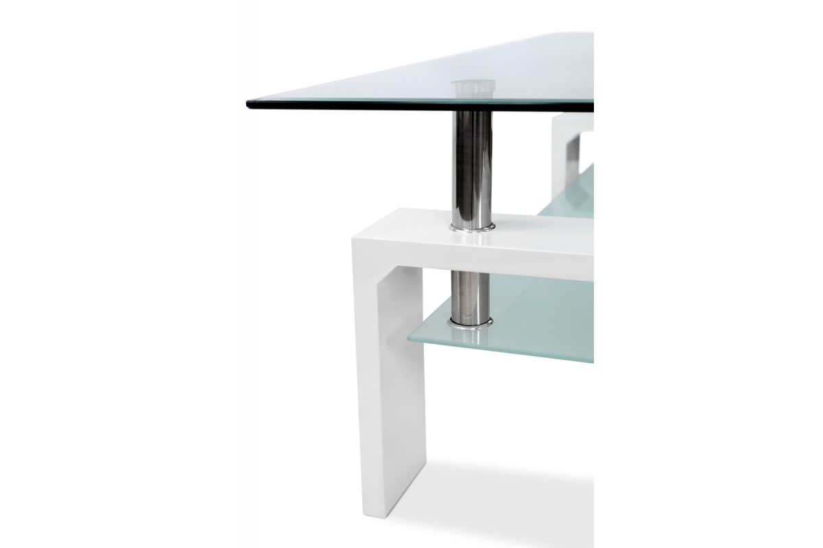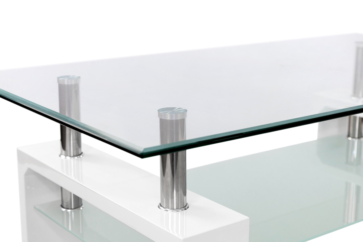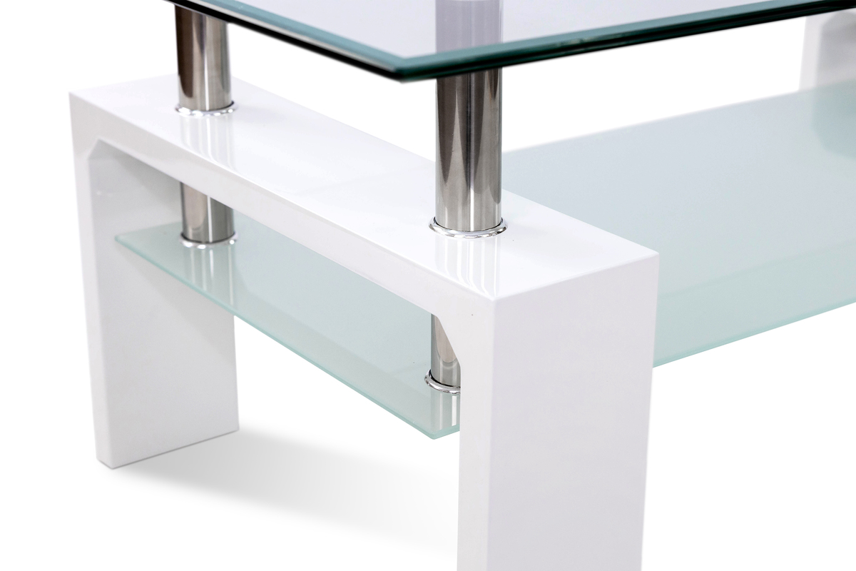 Основа столешні: Скло прозоре 8 мм та матове 8 мм, триплекс. Ніжки - МДФ білий та хром метал. Прозорий/ МДФ
