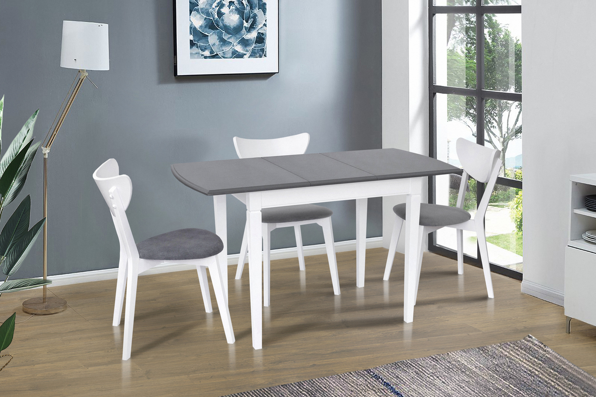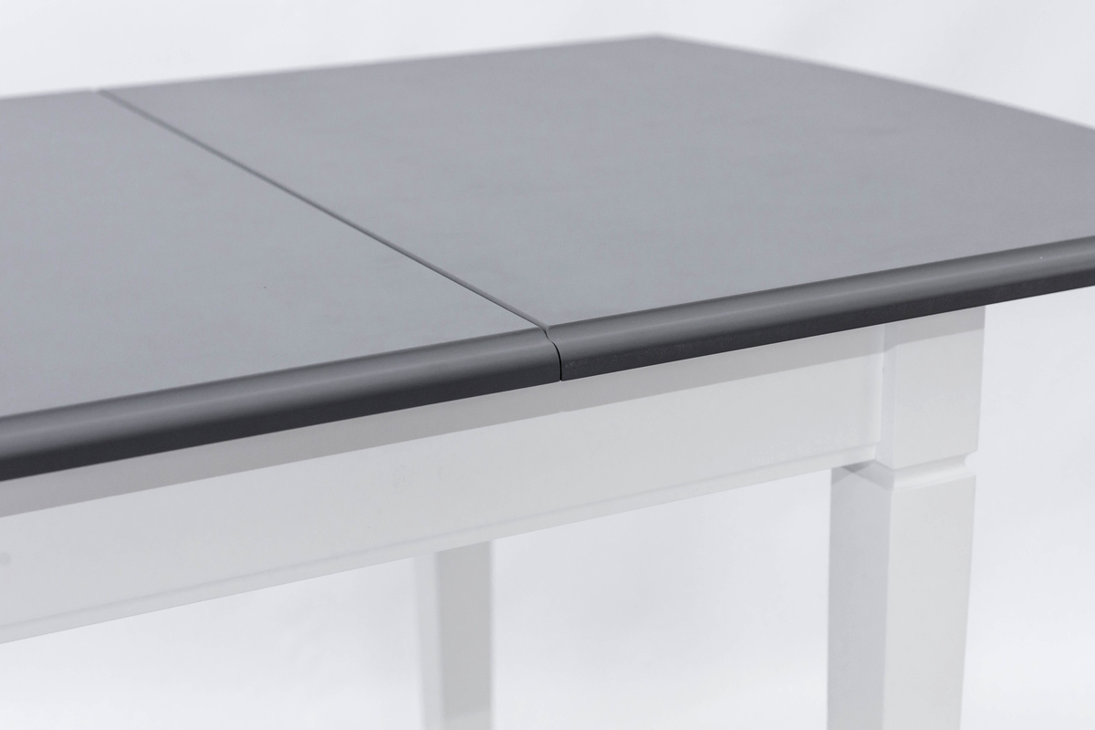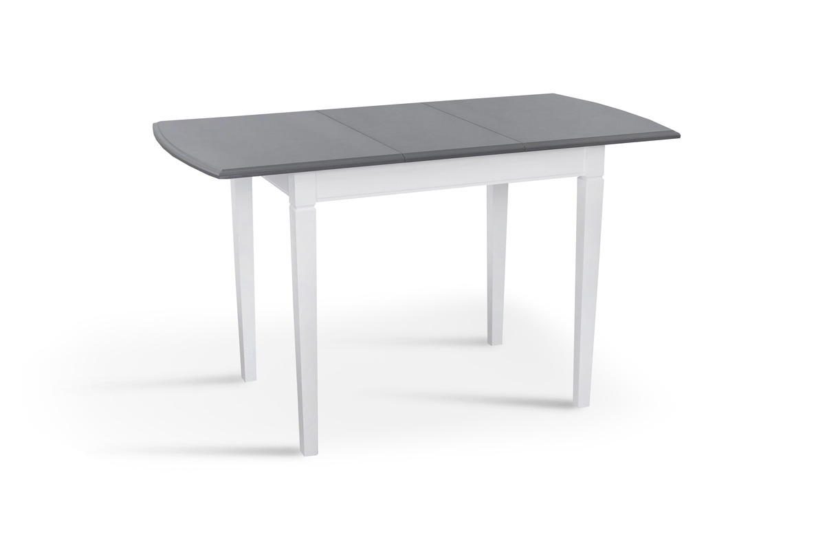 Розмір: 980(+320)*680; Колір: Каркас: Білий; Столешня: Сірий. Матеріал: Каркас: Масив вільхи; Столешня: МДФ фарбований. Товщина столешні: 19 мм.
