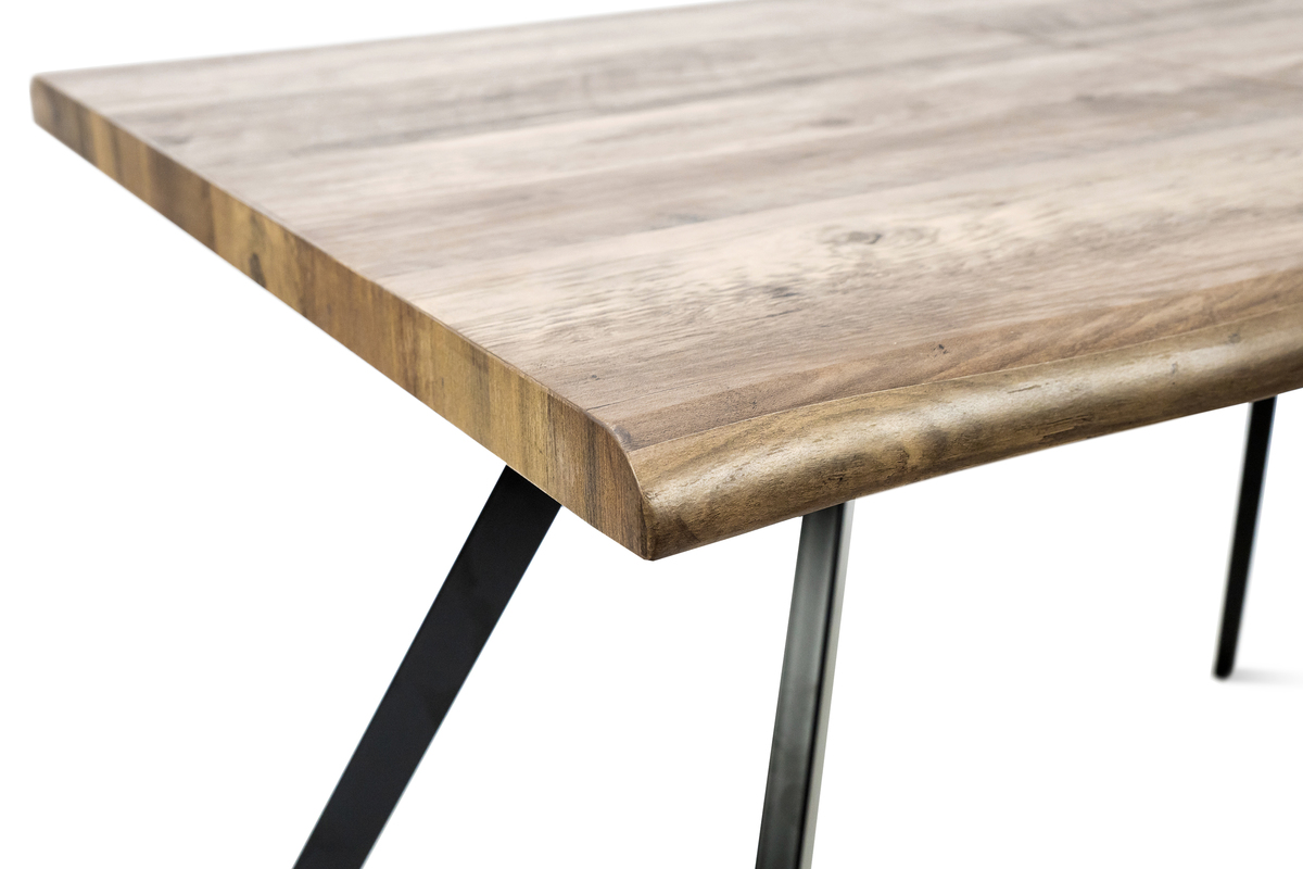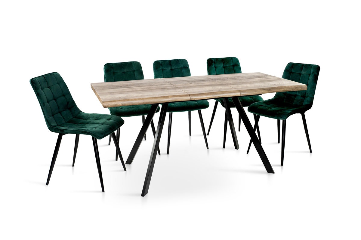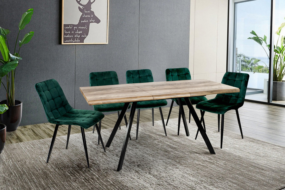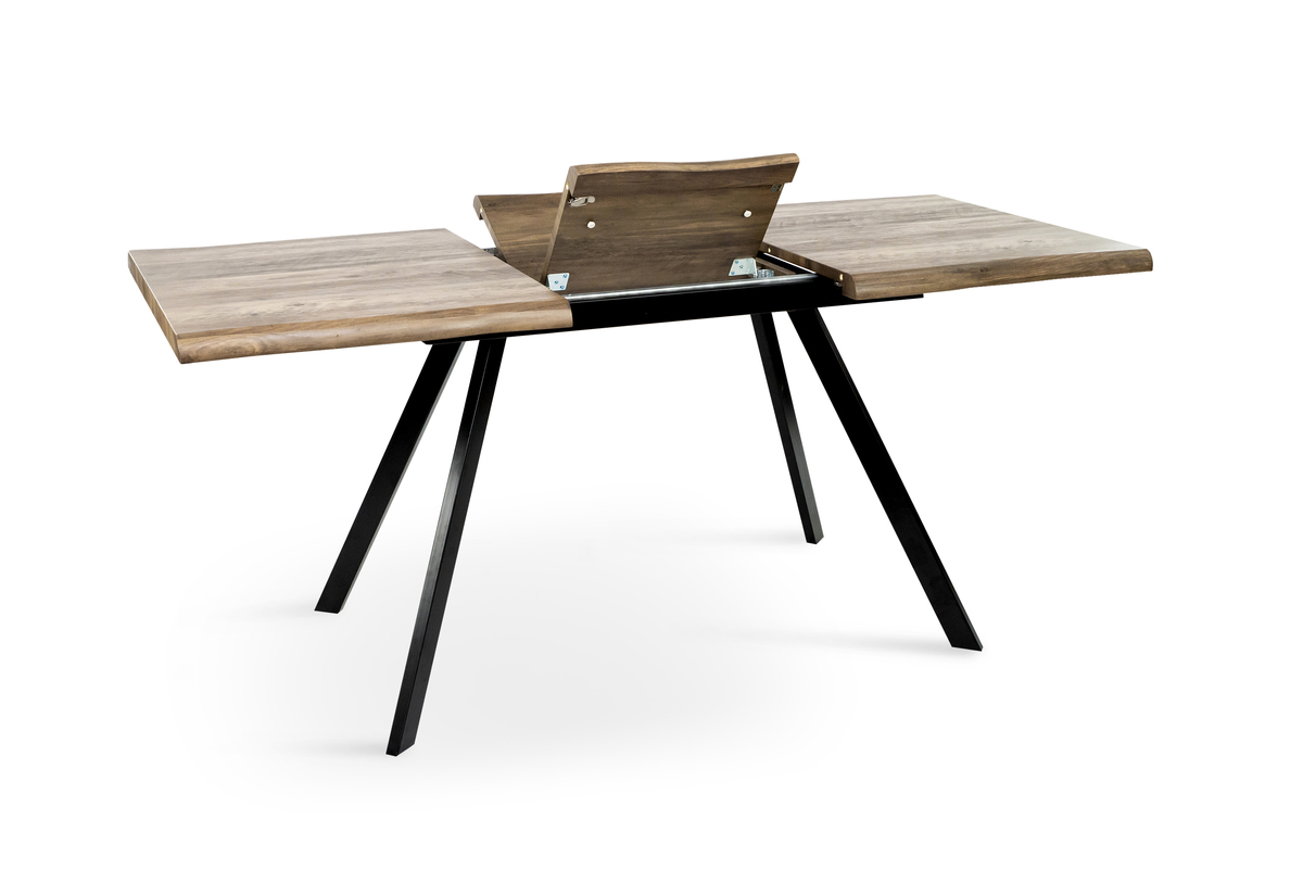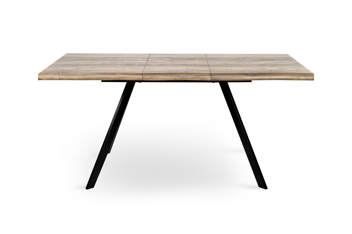 Розмір: 120*(+40)*80 см, H - 76 см; Розкладний: Форма прямокутника з ефектом криволінійної дошки; Колір: під натуральну деревину, ніжки - чорний. Матеріал: МДФ 38 мм товщиною, тонкий шар матеріалу з ефектом деревини (каширований цільнорулоний папір) Ніжки: метал порошкова покраска, колір чорний, товщина 40*80мм