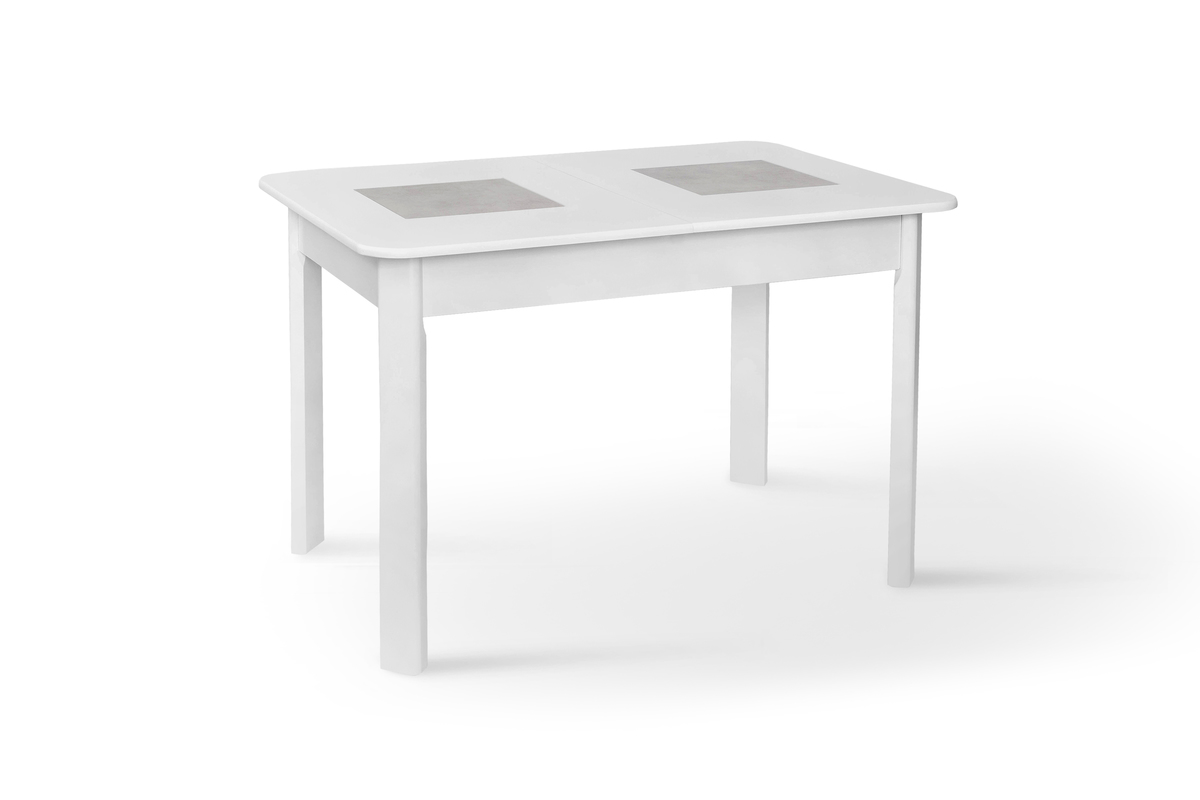 Розмір: 1150(+390)*740 Колір: Каркас: білий; Столешня: білий, кераміка - бежевий. Матеріал: Каркас: масив клена; столешня: МДФ зі штучним шпоном + вставка кераміка. Стіл обідній Бостон досить компактний і добре впишеться в невеликій кухні. Прямокутна стільниця столу з заокругленими краями виготовлена із плити МДФ, яка покрита штучним шпоном і декорована двома вставками з кераміки. Ніжки столу прямі, прямокутної форми, без гострих кутів, виготовлені з натурального дерева.