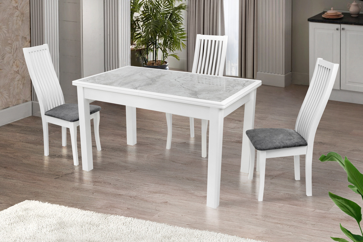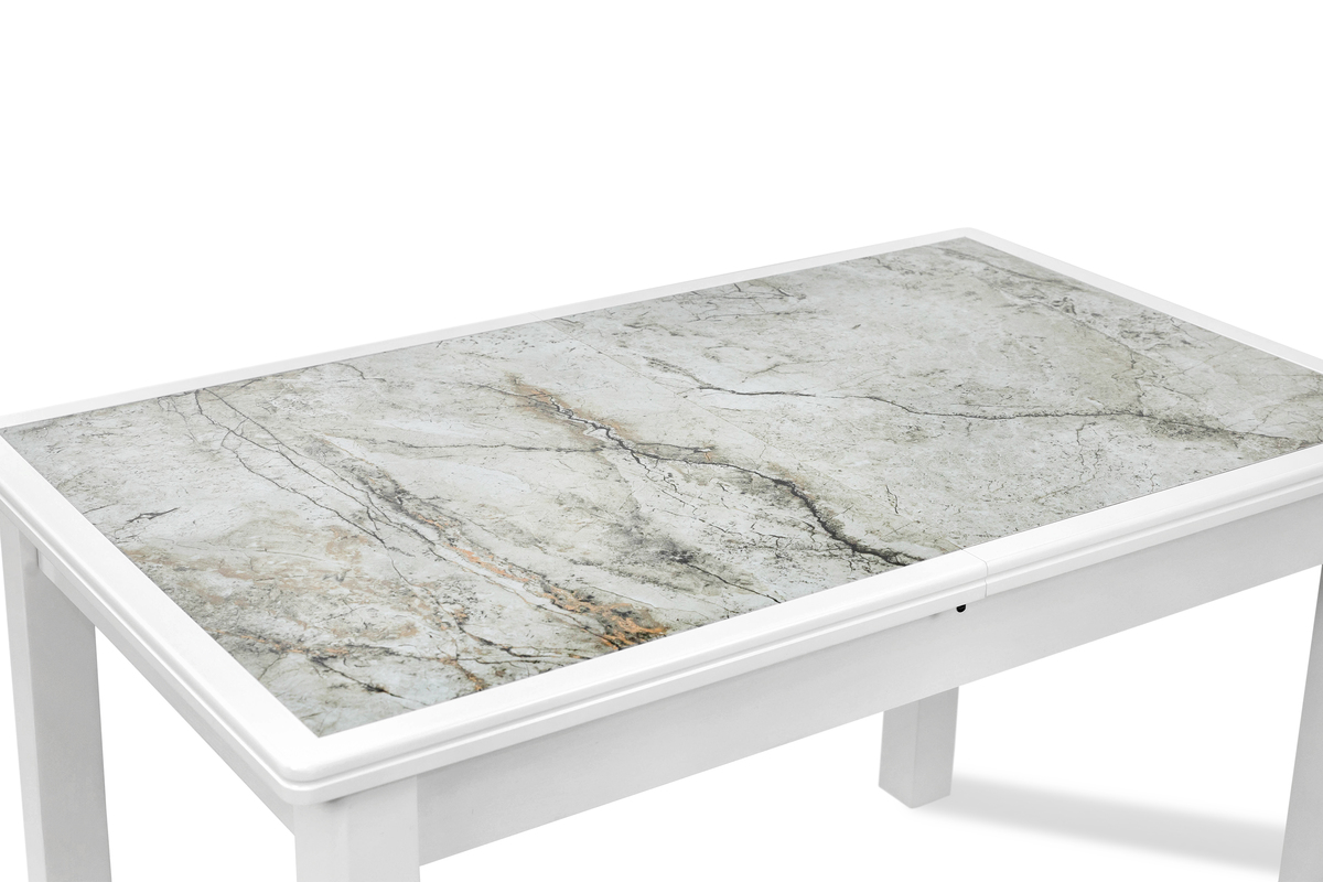 Розмір: 1220(+380)*740 (розкладний); Колір: Білий; Матеріал: Каркас: штучний шпон, Столешня: штучний шпон+кераміка.