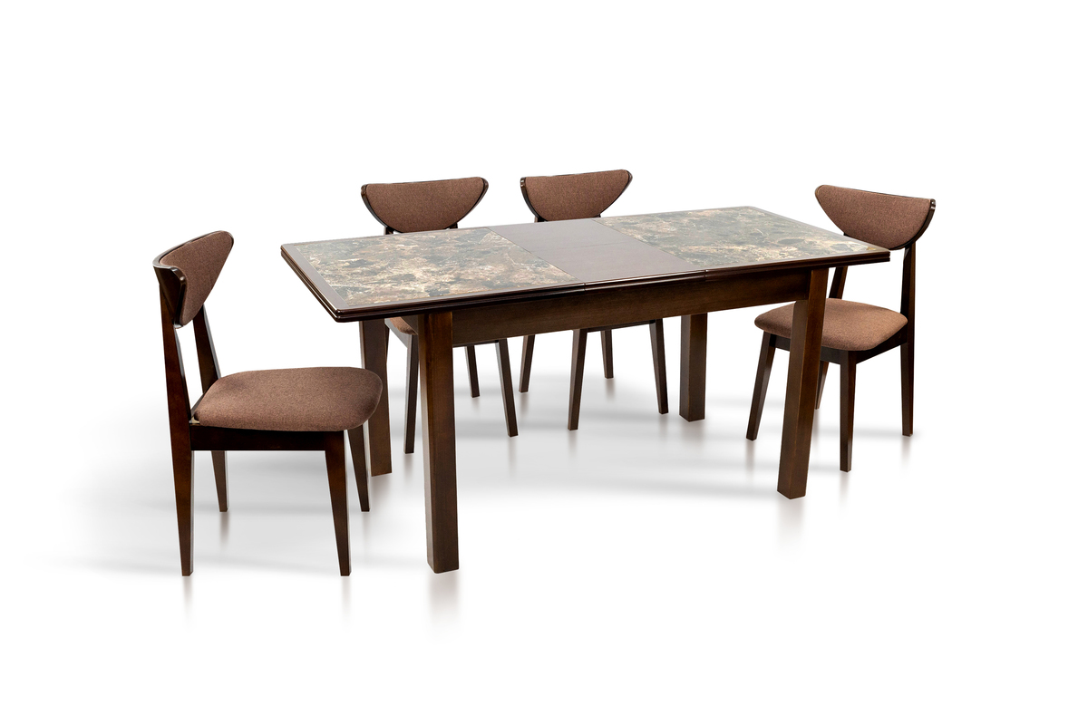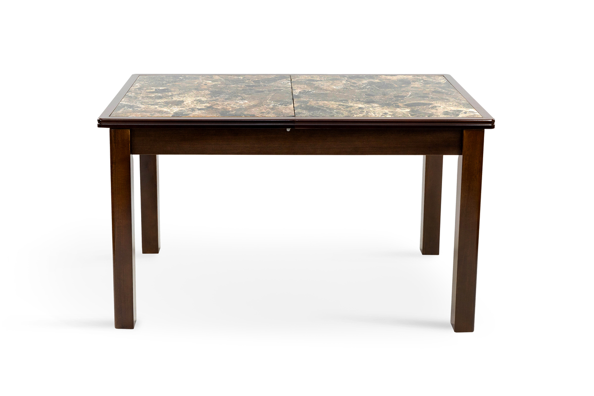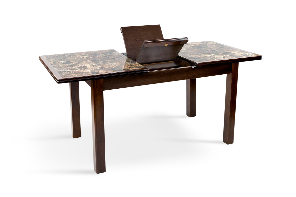 Розмір: 1220(+380)*740 (розкладний); Колір: темн горіх; Матеріал: Каркас: штучний шпон, Столешня: штучний шпон+кераміка.