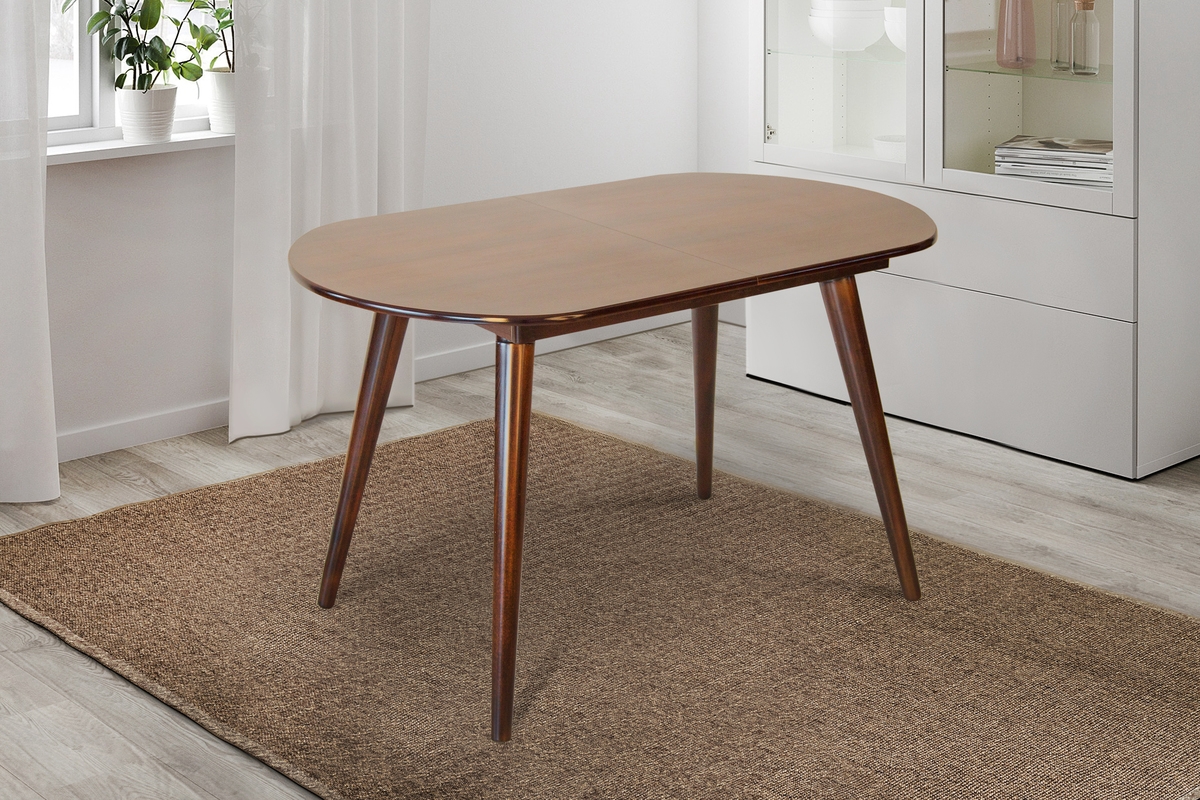 Довжина: 1290 мм (+340 мм)Висота: 750 мм Ширина: 810 мм Матеріал каркасу: масив клена Матеріал стільниці: МДФ зі штучним шпоном Колір тонування дерева: темний горіх або білий Тип: розкладний (+340 мм) Частина, що вставляється в середину столу під час його розкладання, не ховається в стіл (зберігається окремо)