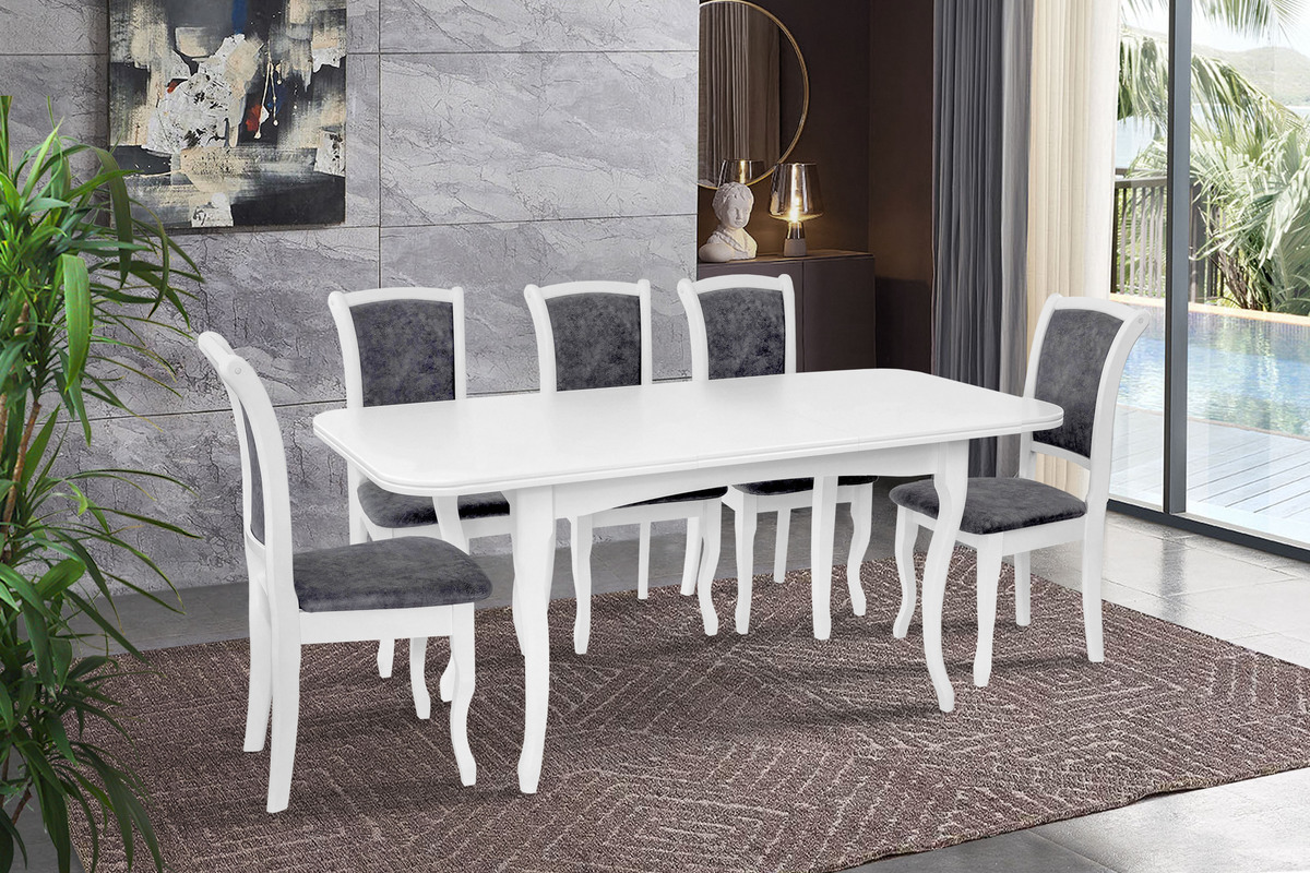 Новинка от производителя "МИКС-Мебель" - обеденный стол "Соренто". Изящный, лаконичный и аристократичный дизайн стола понравится ценителям классики и сдержанной роскоши. Стол прекрасно впишется в интерьер гостиной или кухни, а возможность увеличения размера столешницы на 40 см позволит комфортно разместить не только всех членов семьи, но и гостей. Изысканный дизайн стола подчеркивают изогнутые тонкие ножки и закругленная столешница. Каркас стола изготовлен из натурального дерева - массива ясеня. Материал экологичный, прочный и устойчивый к механическим нагрузкам. Он демонстрирует отличные эксплуатационные характеристики и сохраняет первозданный вид на долгие годы. Столешница выполнена из МДФ с искусственным шпоном. Габариты стола: Высота - 750 мм Глубина - 780 мм Ширина - 1300 (1700) мм Цвет: орех темный, белый.