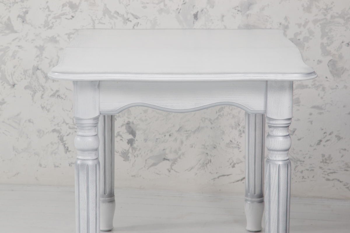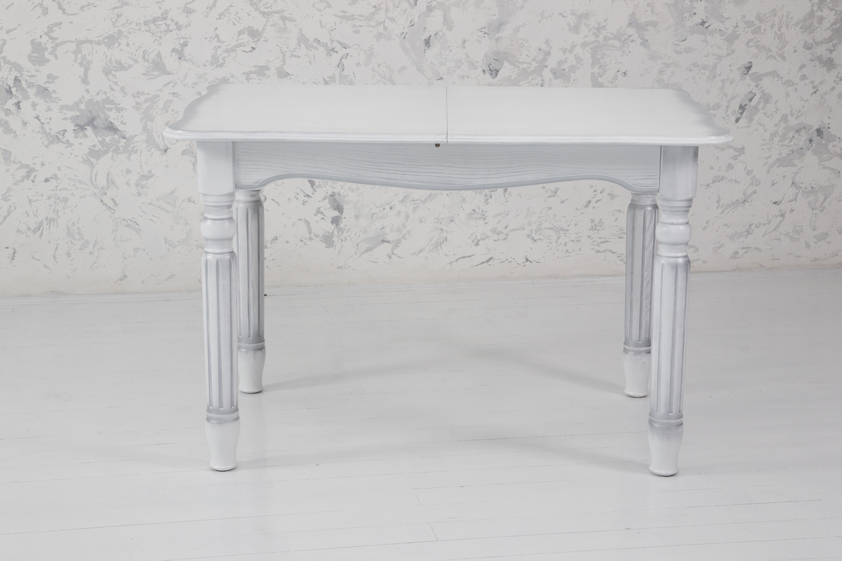 Опис Стіл обідній Венеція (120+40)/80, білий+сріб патин