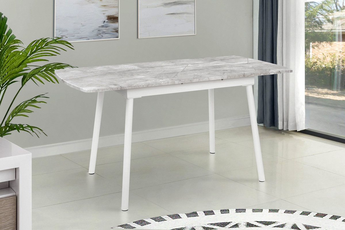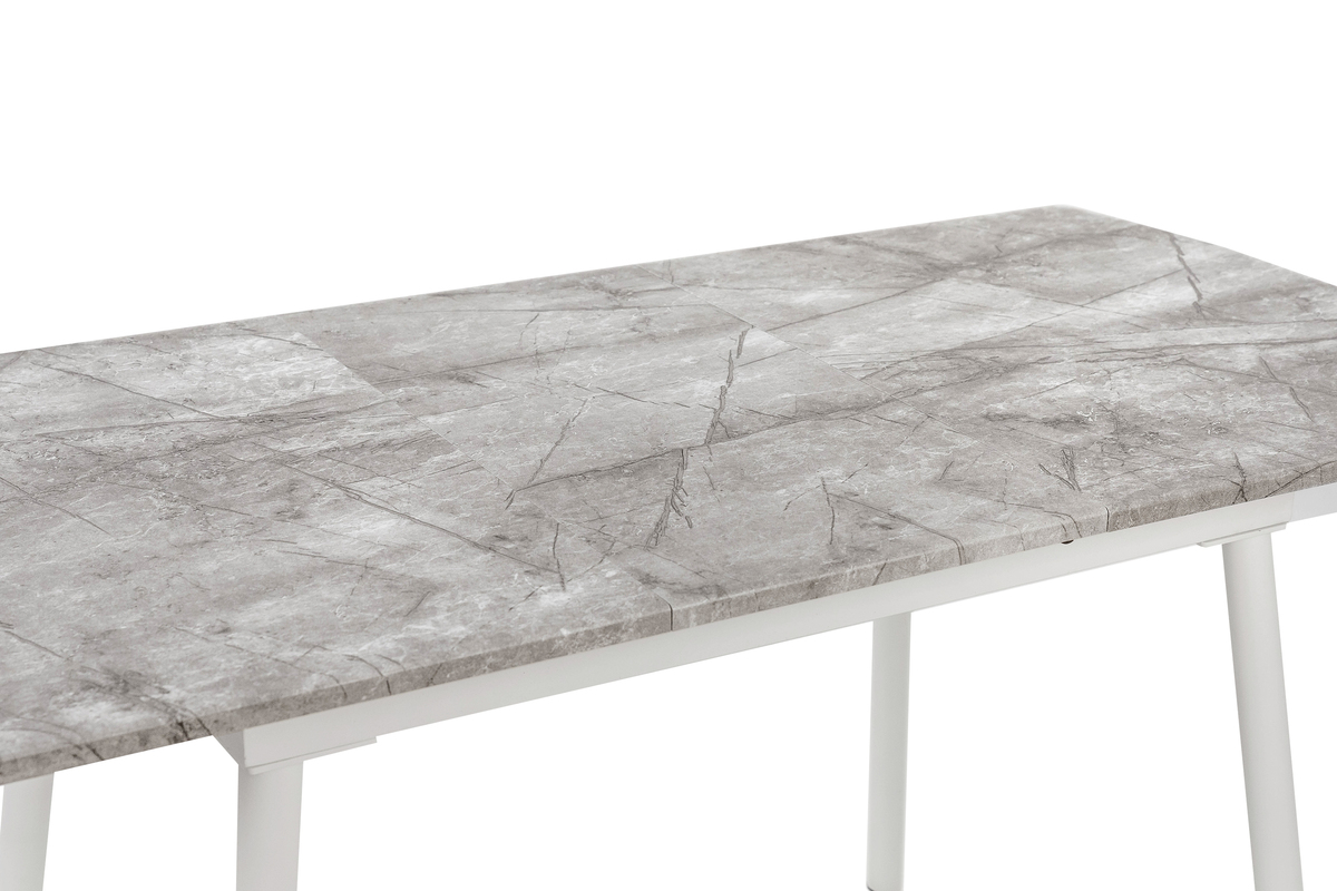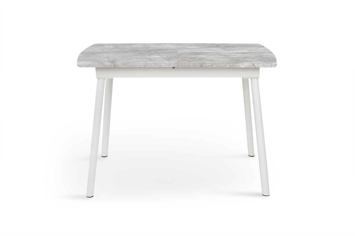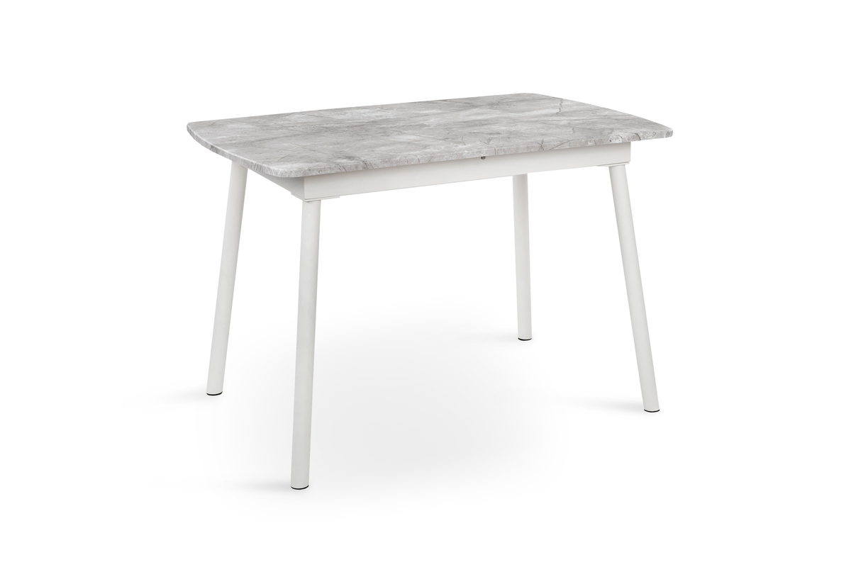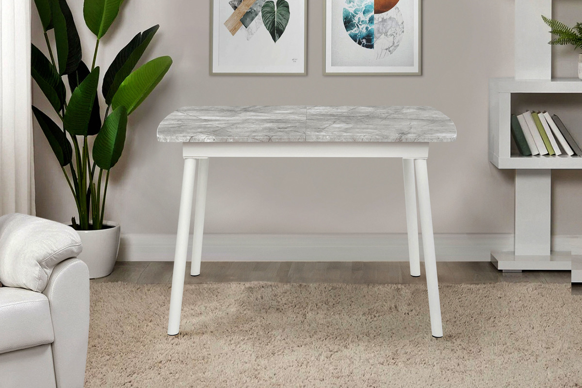 Розмір: 1100(+350)*700. Колір: Каркас і ніжки: Білий; Столешня: базальт. Матеріал: Каркас і ніжки: Метал; Столешня: МДФ у ПВХ плівці. Вкладка в стіл суцільна, зберігається у столі. Товщина столешні: 20 мм. Каркас і ніжки: порошкова покраска.