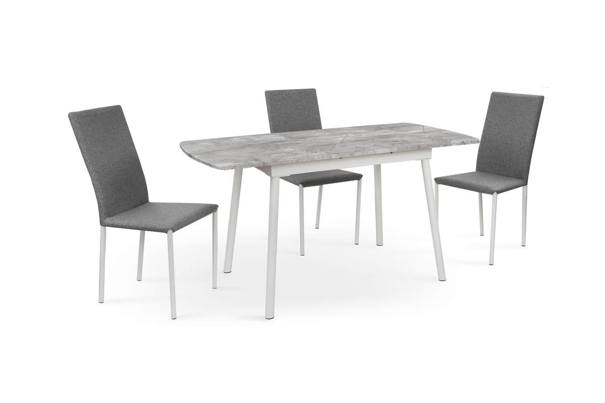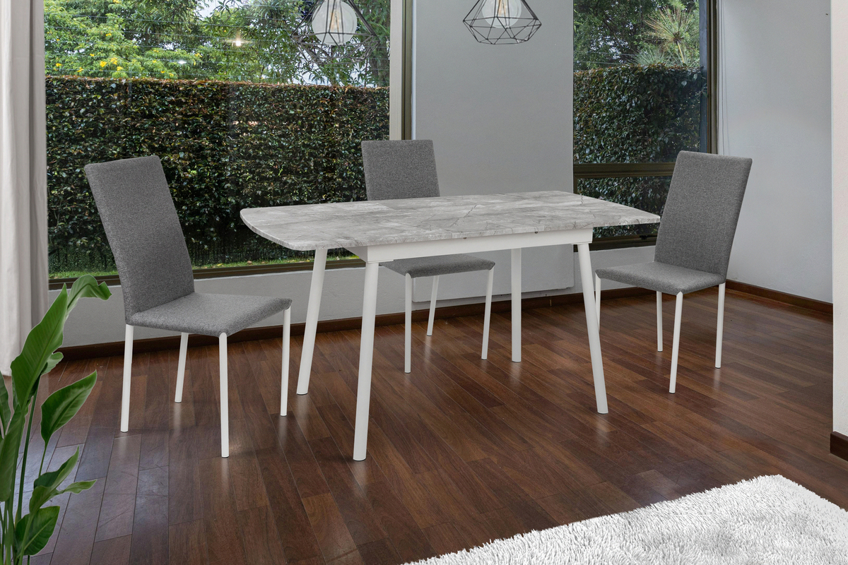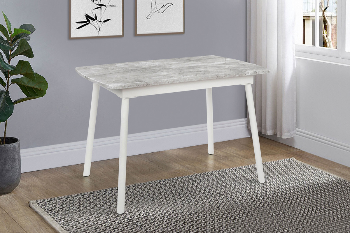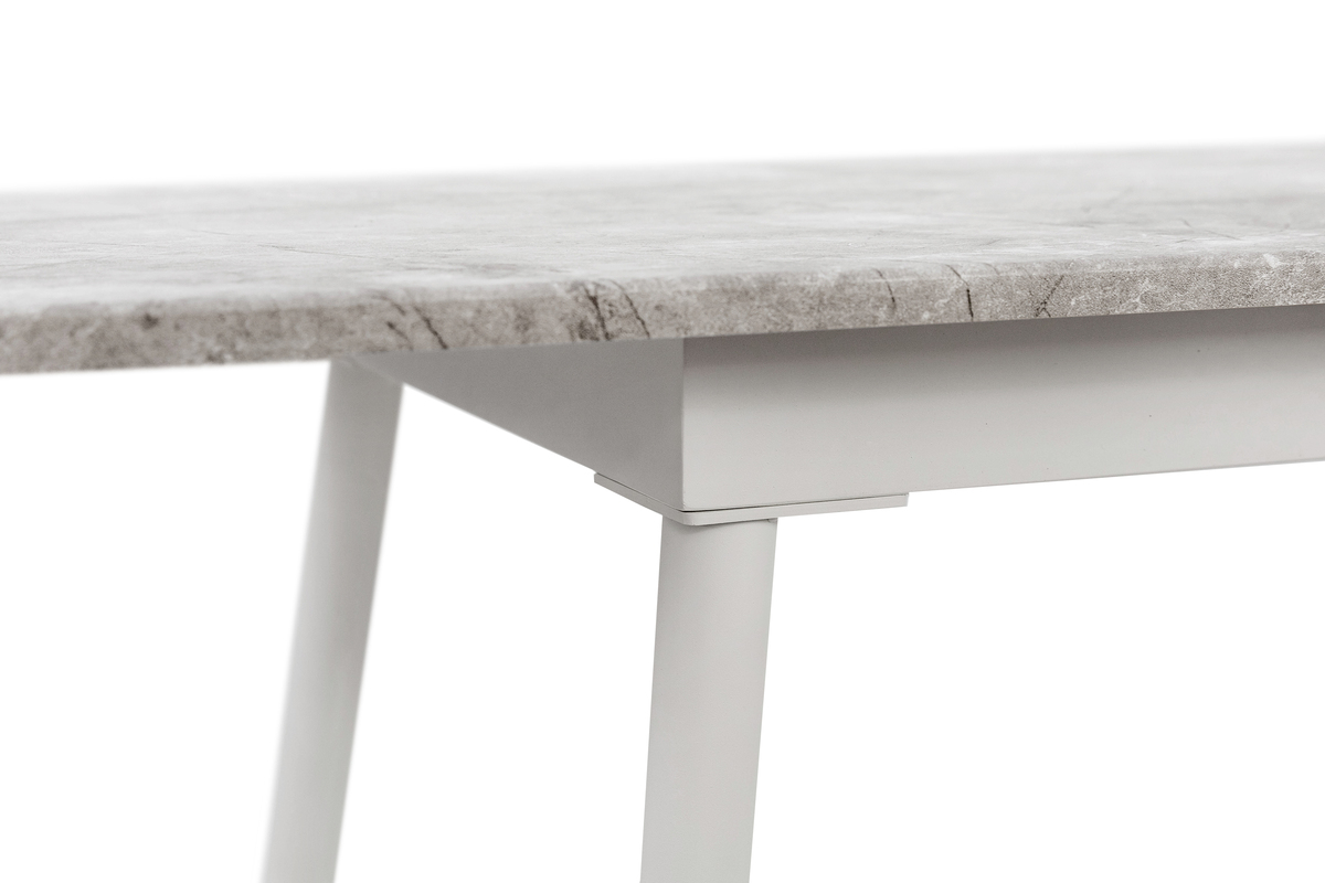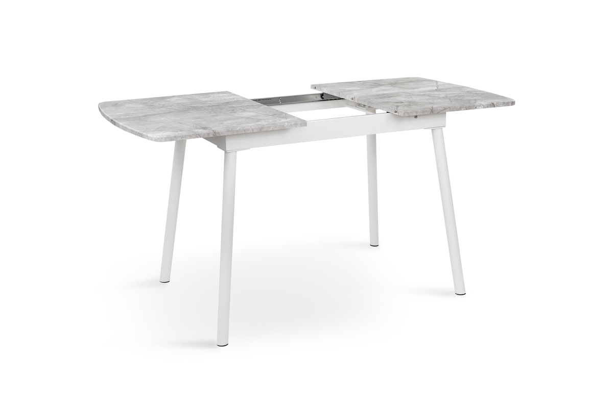Розмір: 1100(+350)*700. Колір: Каркас і ніжки: Білий; Столешня: базальт. Матеріал: Каркас і ніжки: Метал; Столешня: МДФ у ПВХ плівці. Вкладка в стіл суцільна, зберігається у столі. Товщина столешні: 20 мм. Каркас і ніжки: порошкова покраска.