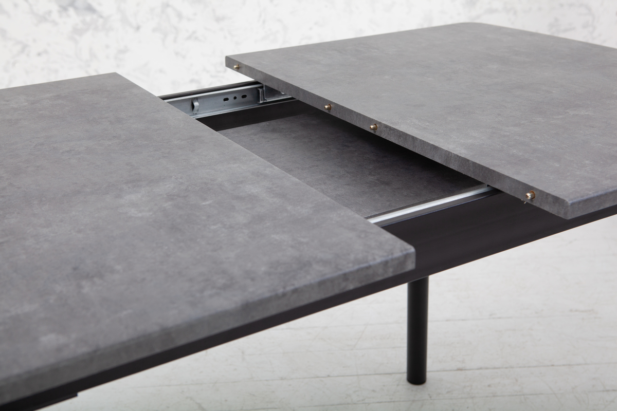 Розмір: 1100(+350)*700. Колір: Каркас і ніжки: чорн; Столешня: мрамор темн. Матеріал: Каркас і ніжки: Метал; Столешня: МДФ у ПВХ плівці. Вкладка в стіл суцільна, зберігається у столі. Товщина столешні: 20 мм. Каркас і ніжки: порошкова покраска.