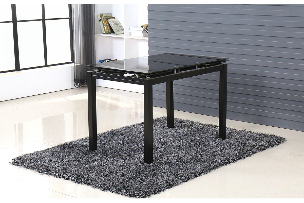 Скло чорного кольору, термозагартоване (триплекс) Товщина скла = 10 мм. Ніжки - метал, колір чорний. Розмір складений 110 см*70 см. Розмір розкладений 170*70см. Висота: 75 см